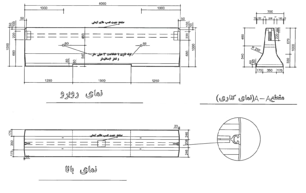 • ابعاد: ۶۰۰×۱۰۰×۷۰ سانتی‌متر